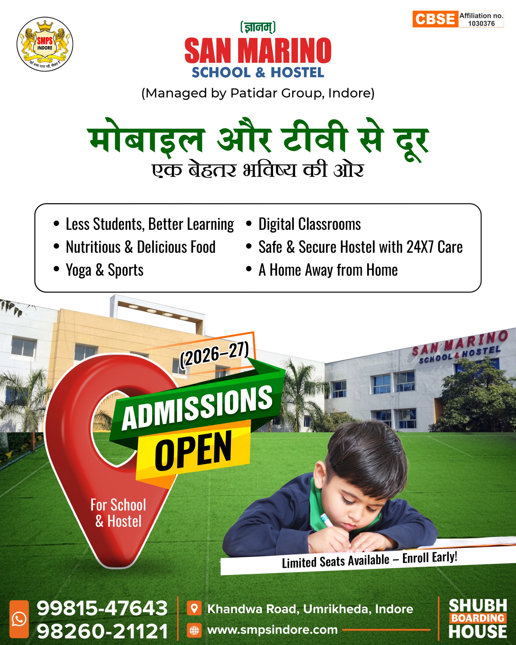 San Marino Public School stands as a beacon of academic excellence and holistic development in Indore. Established in 2001 by a visionary group led by Mr. Mahesh Patidar and Mrs. Hemlata Patidar, with significant support from Mr. Umesh Patidar and Mrs. Dipika Patidar our institution has been committed to providing quality education to students from all strata of society.